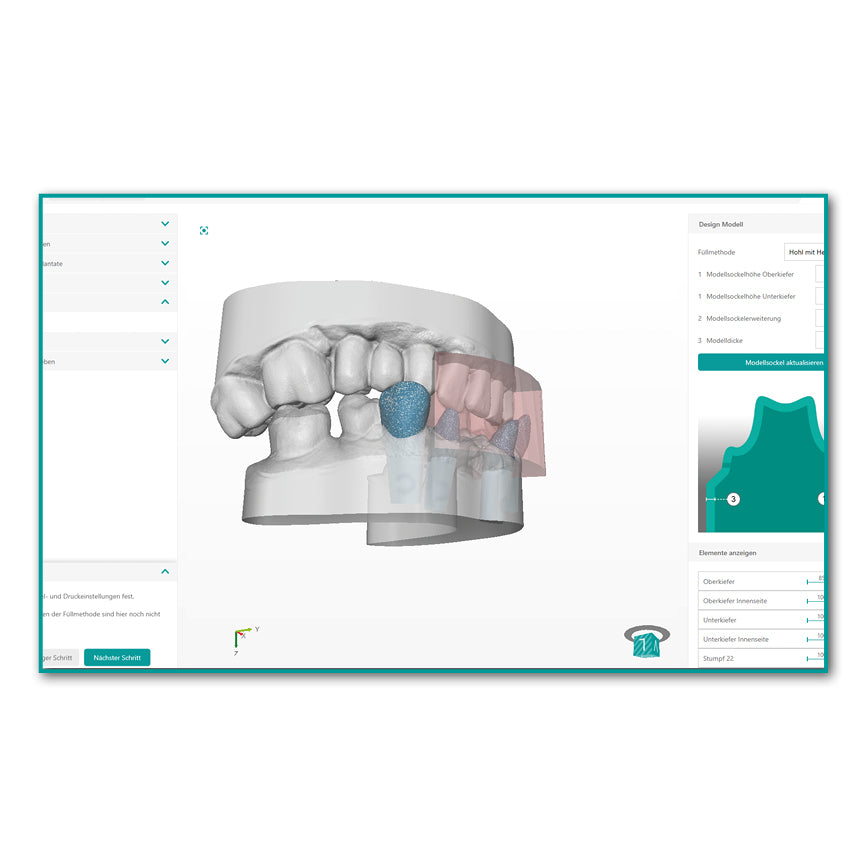 With the new print version, you can create models in your digital plaster kitchen in just a few minutes that can withstand even complex requirements such as those in implantology. After the design, you can send the data directly to us for 3D printing.